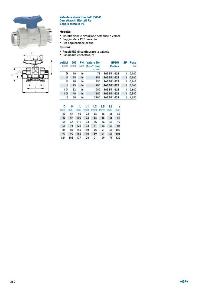 Valvola a sfera tipo 542 PVC-C