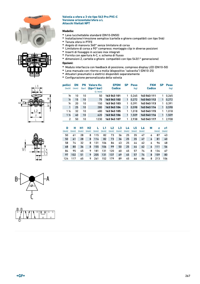 Valvola a sfera a 3 vie tipo 543 Pro PVC-C