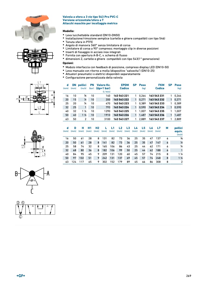 Valvola a sfera a 3 vie tipo 543 Pro PVC-C