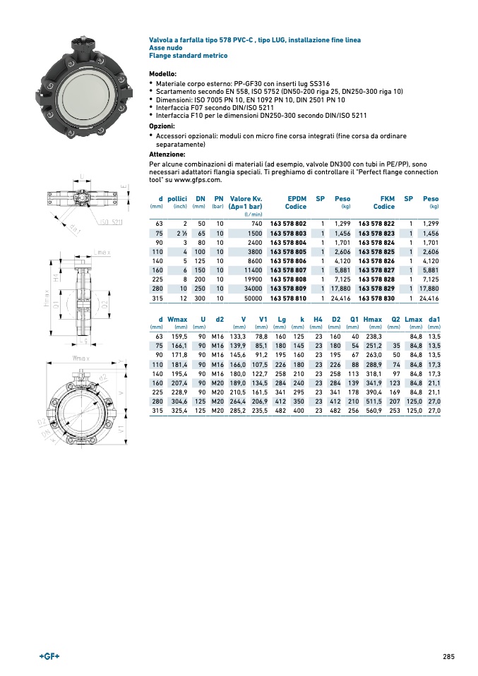 Valvola a farfalla tipo 578 PVC-C , tipo LUG, installazione fine linea