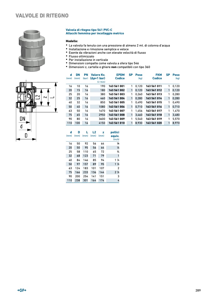 La valvola fa tenuta con una pressione di almeno 2 mt. di colonna d'acqua