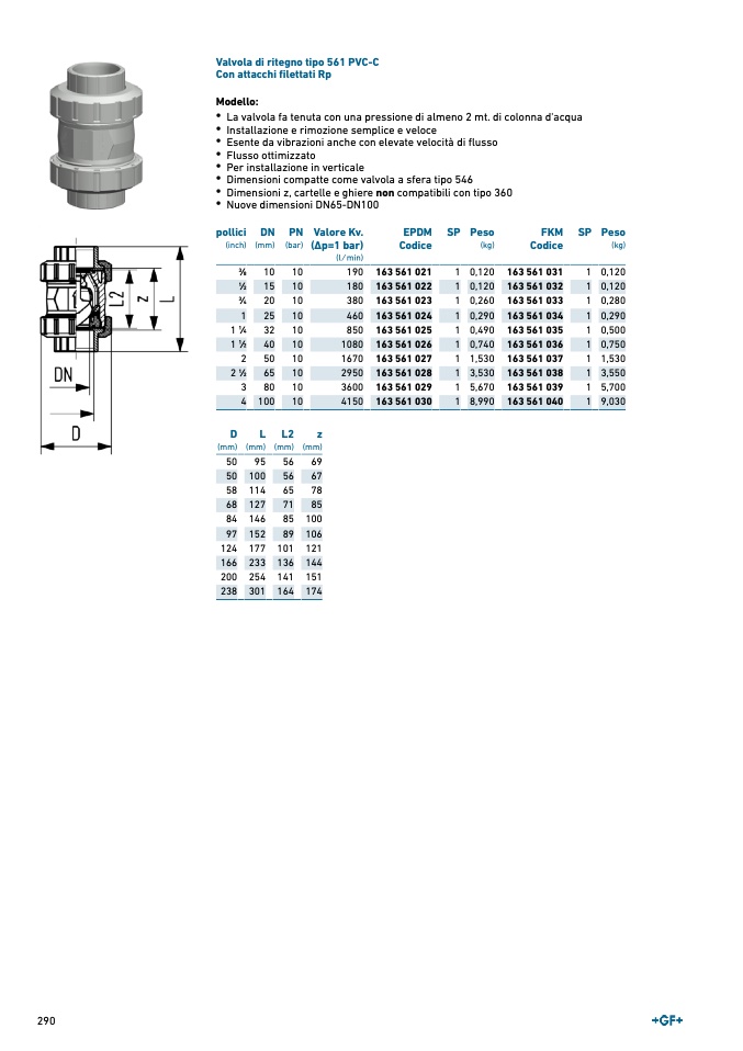 La valvola fa tenuta con una pressione di almeno 2 mt. di colonna d'acqua