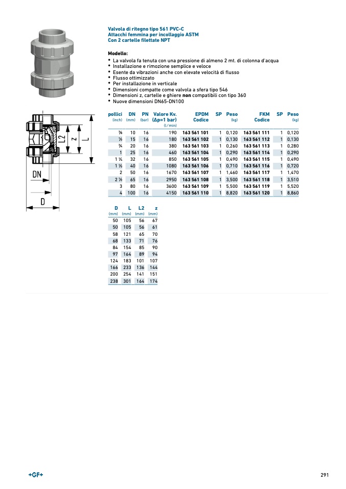 La valvola fa tenuta con una pressione di almeno 2 mt. di colonna d'acqua