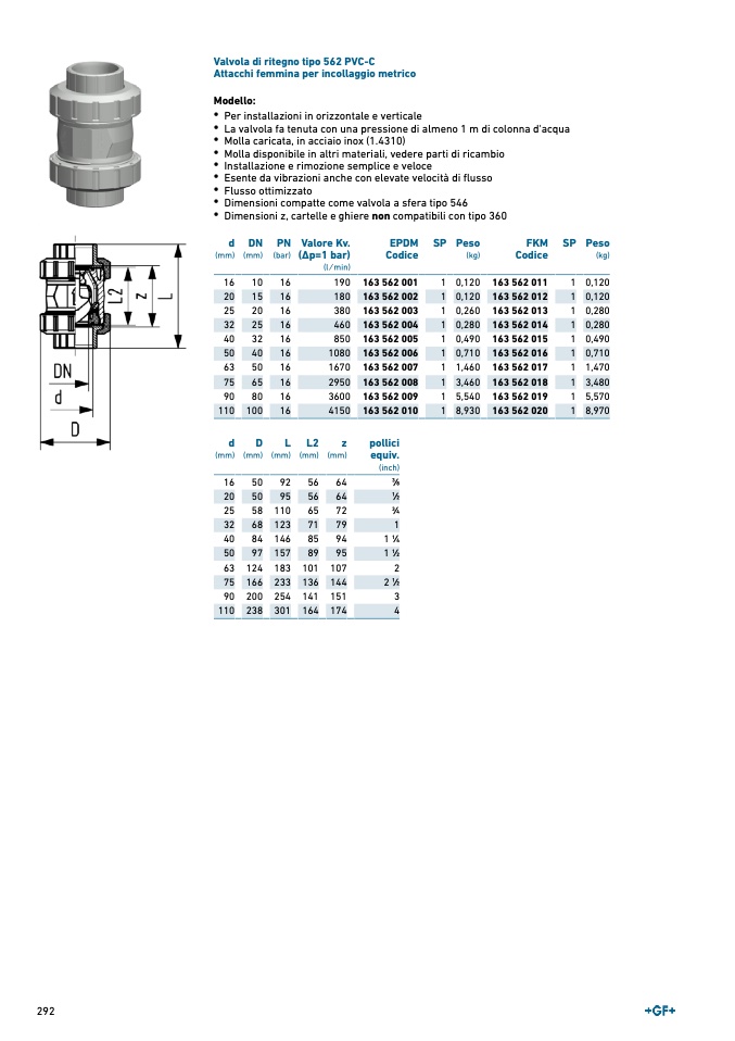 La valvola fa tenuta con una pressione di almeno 1 m di colonna d'acqua