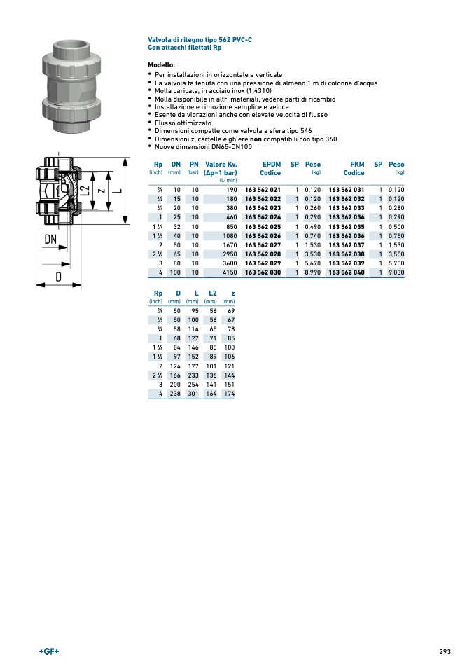 La valvola fa tenuta con una pressione di almeno 1 m di colonna d'acqua