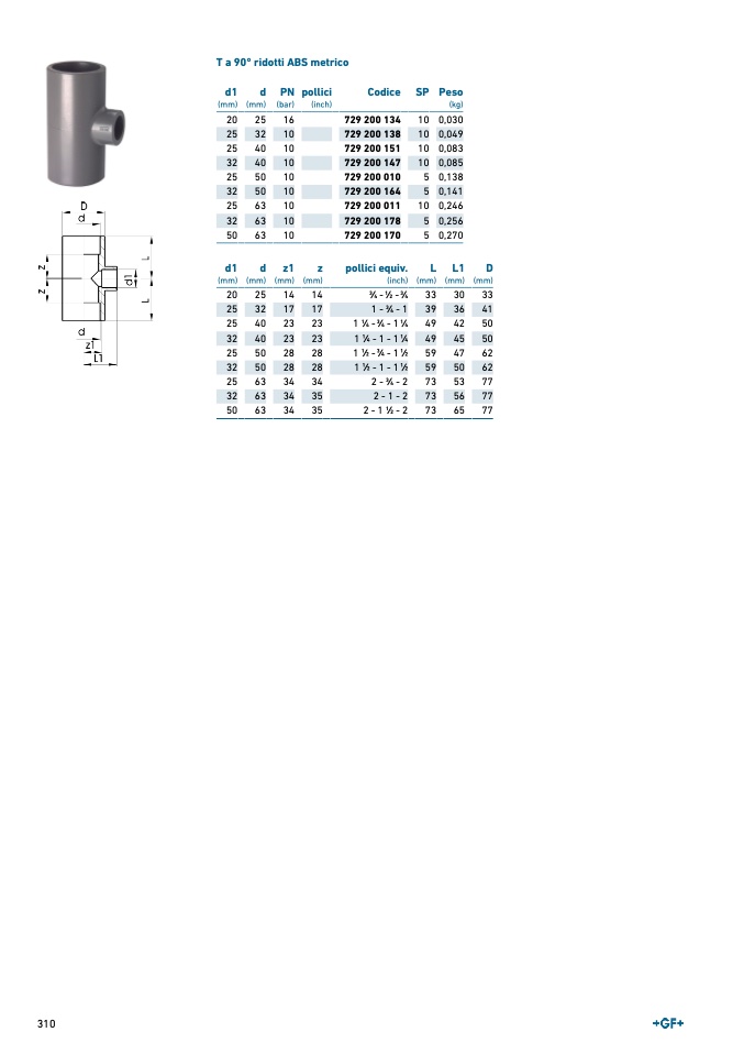 T a 90° ridotti ABS metrico