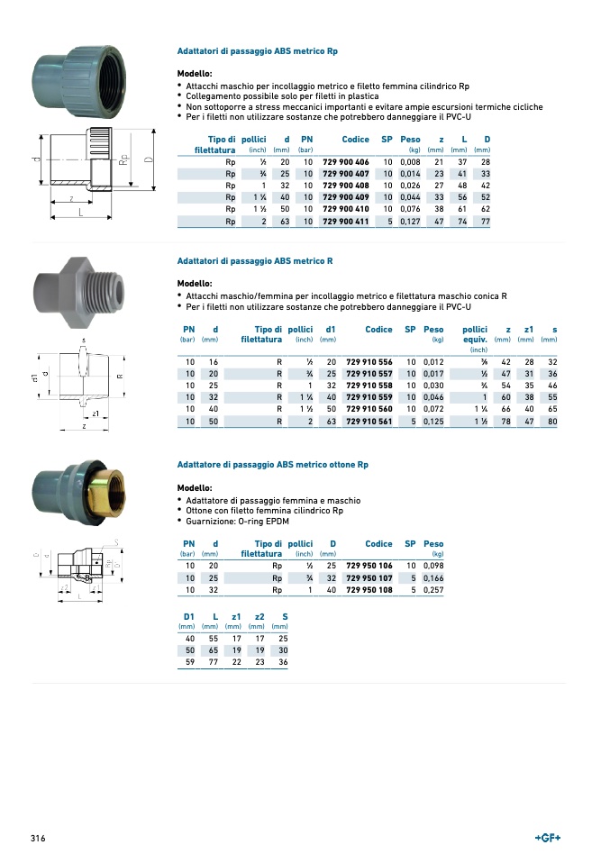 Attacchi maschio per incollaggio metrico e filetto femmina cilindrico Rp