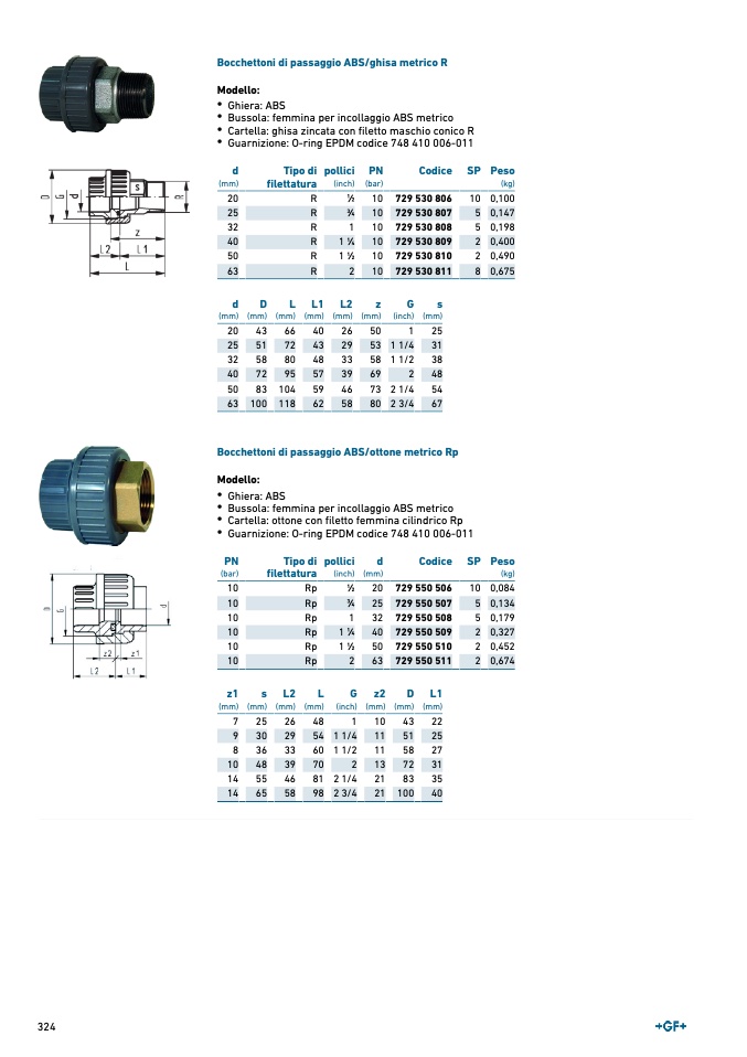 Bocchettoni di passaggio ABS/ghisa metrico R
