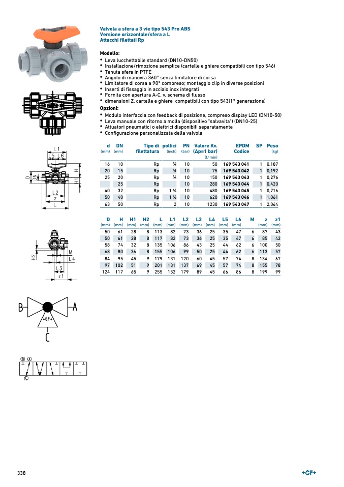 Valvola a sfera a 3 vie tipo 543 Pro ABS