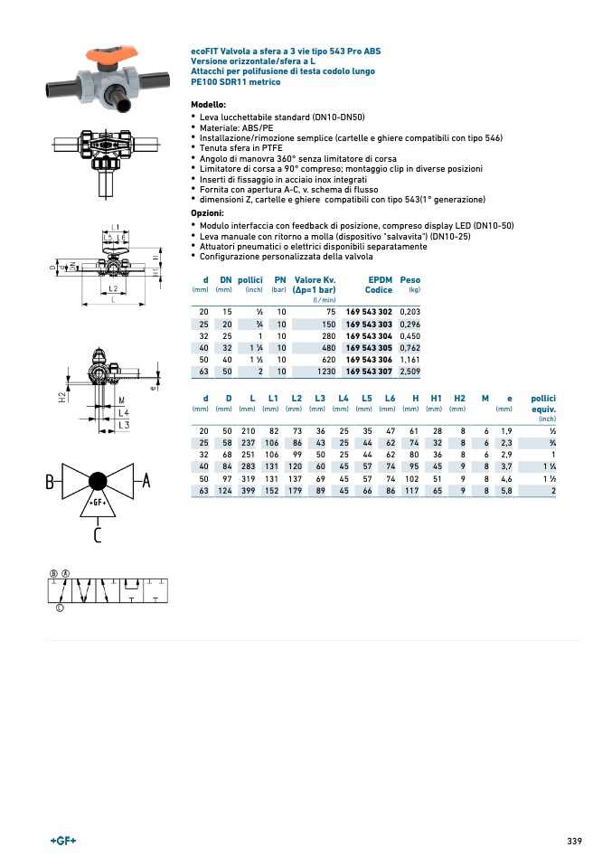 ecoFIT Valvola a sfera a 3 vie tipo 543 Pro ABS