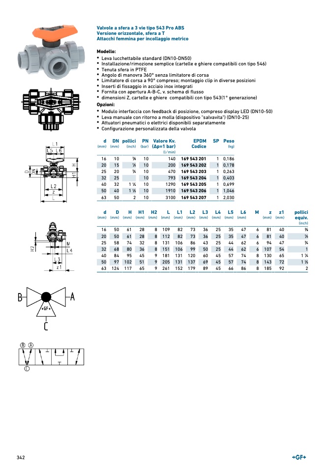 Valvole a sfera a 3 vie tipo 543 Pro ABS