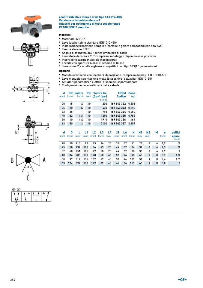 ecoFIT Valvola a sfera a 3 vie tipo 543 Pro ABS