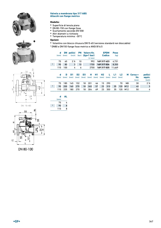 Valvola a membrana tipo 317 ABS