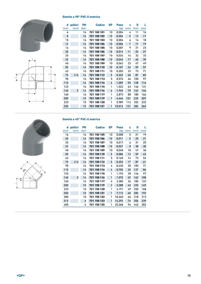 Gomito a 90° PVC-U metrico