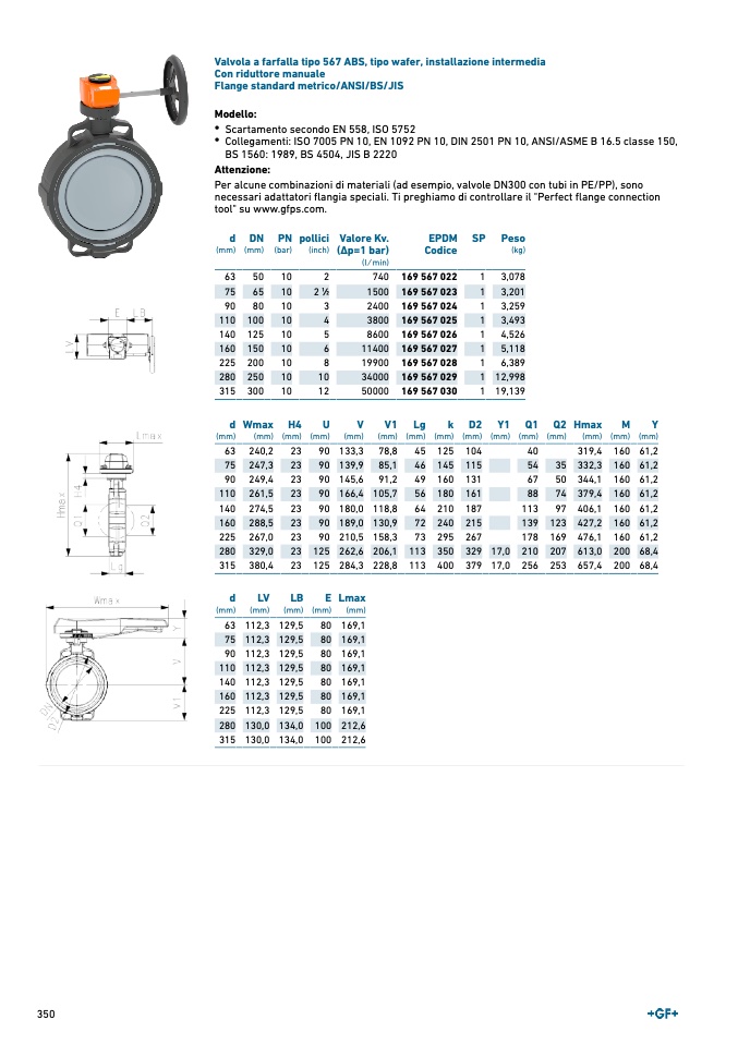 Valvola a farfalla tipo 567 ABS, tipo wafer, installazione intermedia