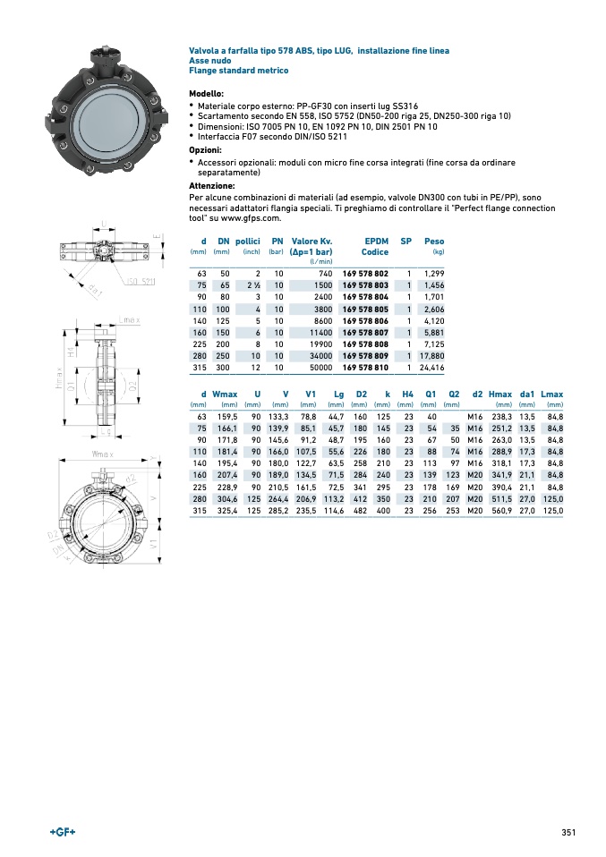 Valvola a farfalla tipo 578 ABS, tipo LUG, installazione fine linea