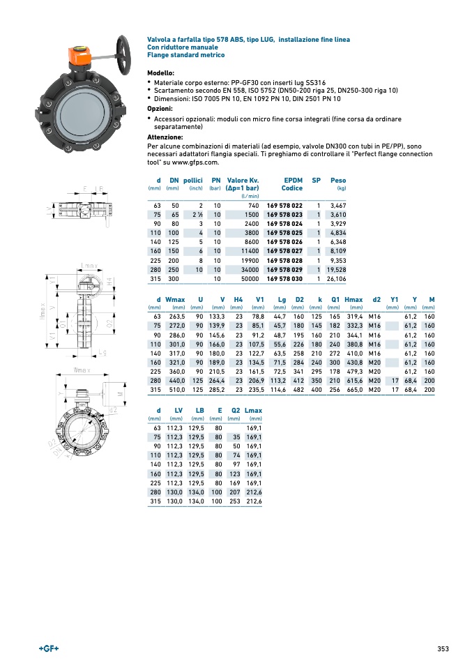 Valvola a farfalla tipo 578 ABS, tipo LUG, installazione fine linea