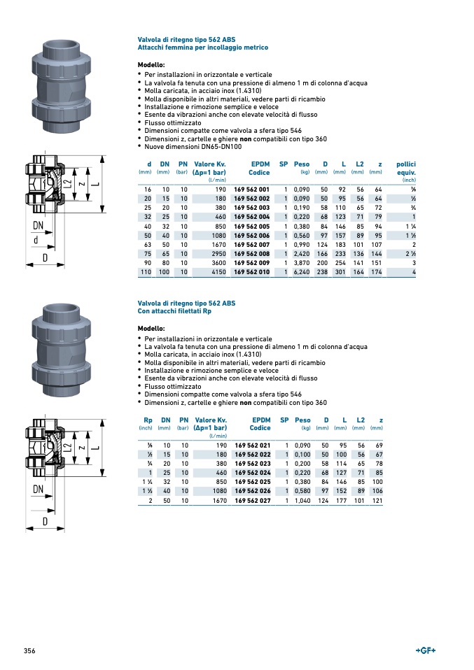 La valvola fa tenuta con una pressione di almeno 1 m di colonna d'acqua