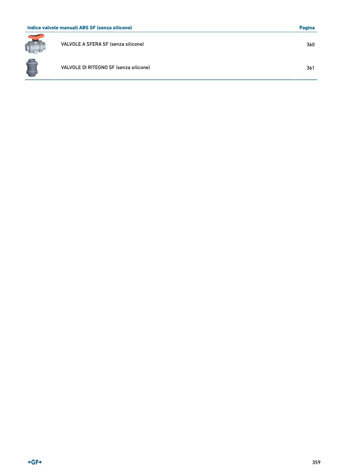 Indice valvole manuali ABS SF (senza silicone)