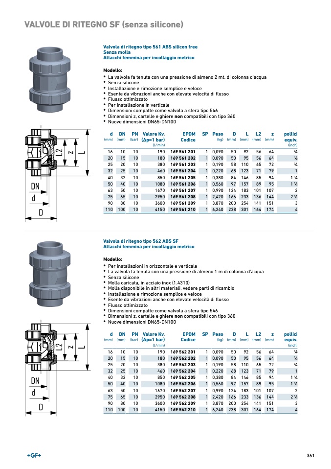 La valvola fa tenuta con una pressione di almeno 2 mt. di colonna d'acqua