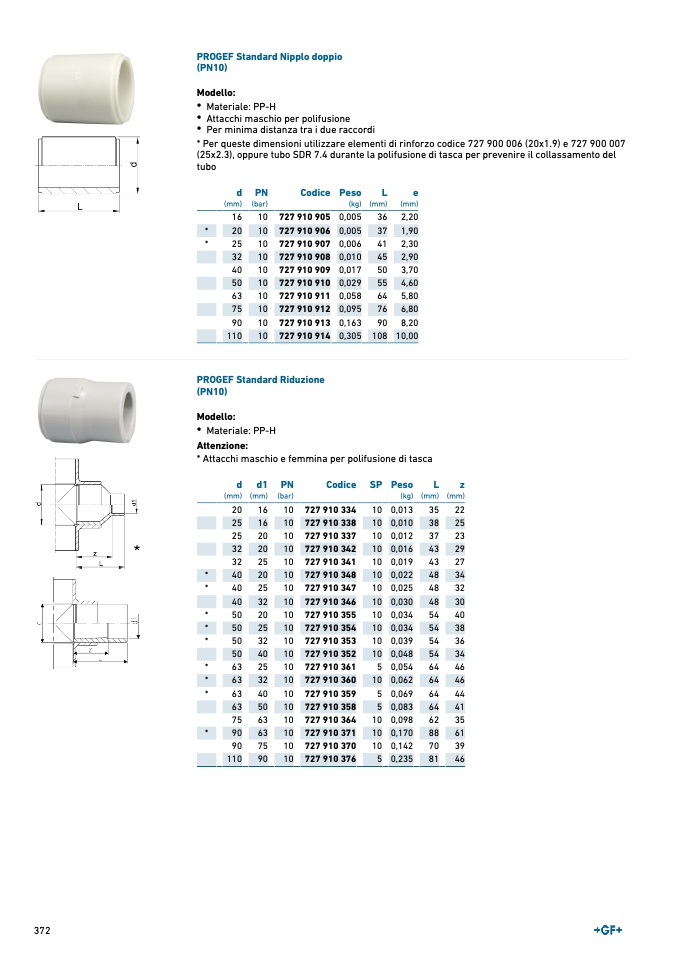 * Per queste dimensioni utilizzare elementi di rinforzo codice 727 900 006 (20x1.9) e 727 900 007