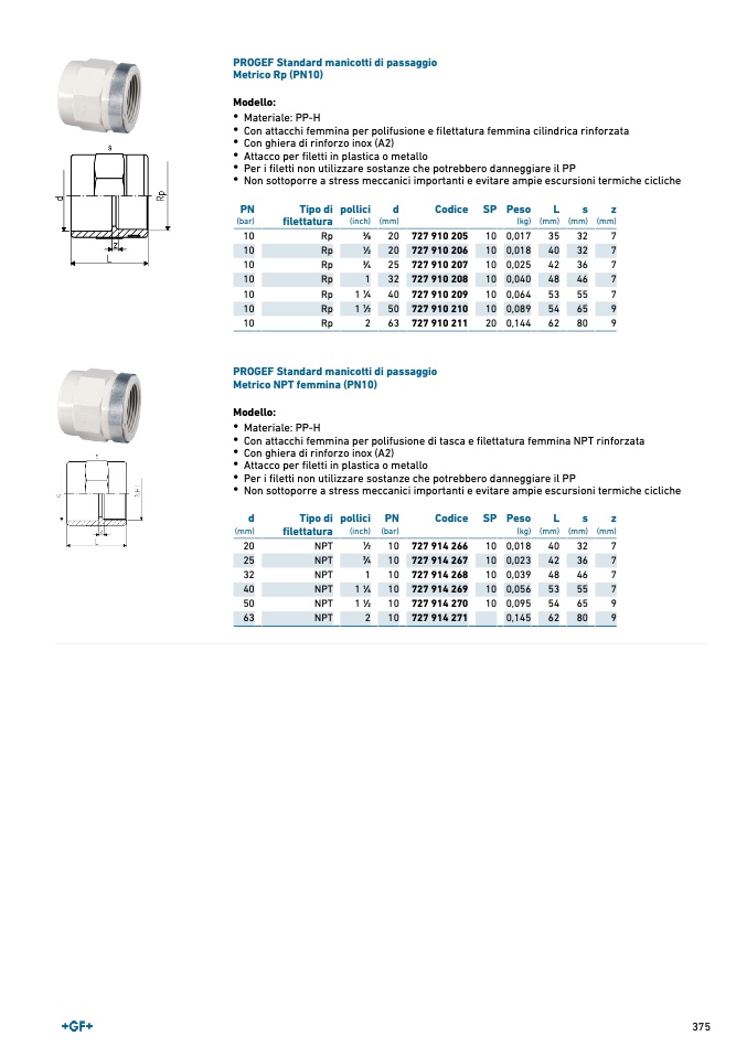 Con attacchi femmina per polifusione e filettatura femmina cilindrica rinforzata