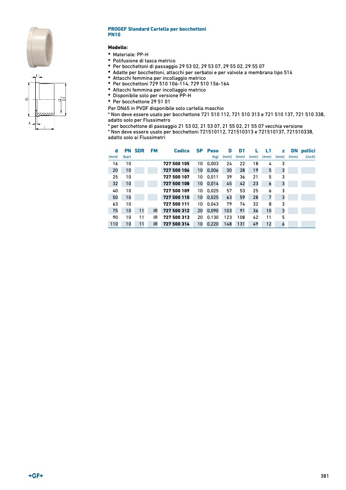 Per DN65 in PVDF disponibile solo cartella maschio