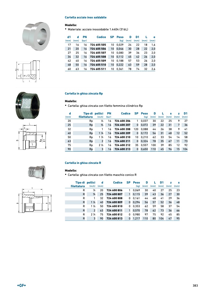 Cartella: ghisa zincata con filetto femmina cilindrico Rp