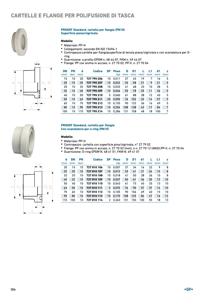Flange: PP con anima in acciaio, n. 27 70 02 (mm), o n. 27 70 12 (ANSI),PP-V, n. 27 70 04