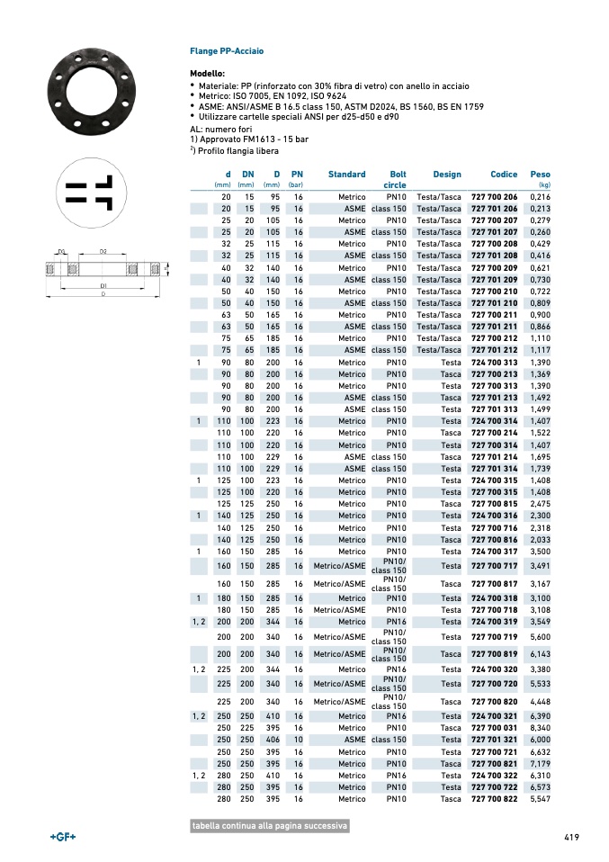 Metrico: ISO 7005, EN 1092, ISO 9624