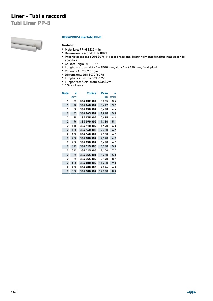 Proprietà: secondo DIN 8078; No test pressione. Restringimento longitudinale secondo