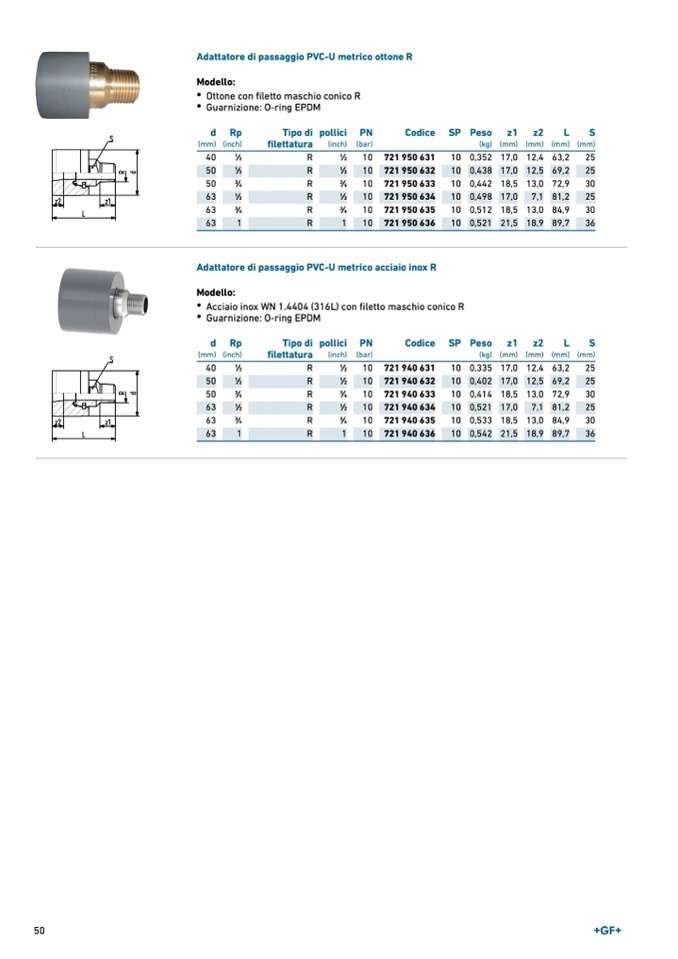 Adattatore di passaggio PVC-U metrico acciaio inox R