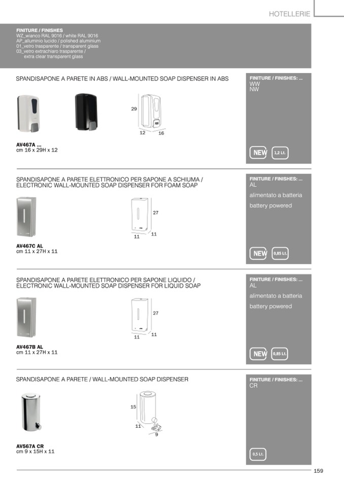 SPANDISAPONE A PARETE IN ABS / WALL-MOUNTED SOAP DISPENSER IN ABS