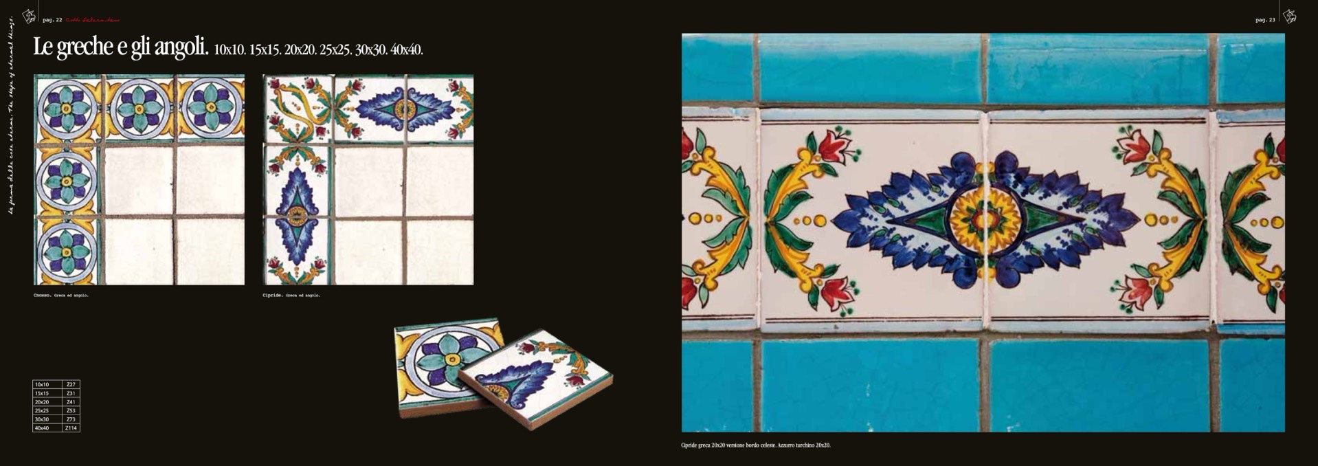 Cipride greca 20x20 versione bordo celeste. Azzurro turchino 20x20.