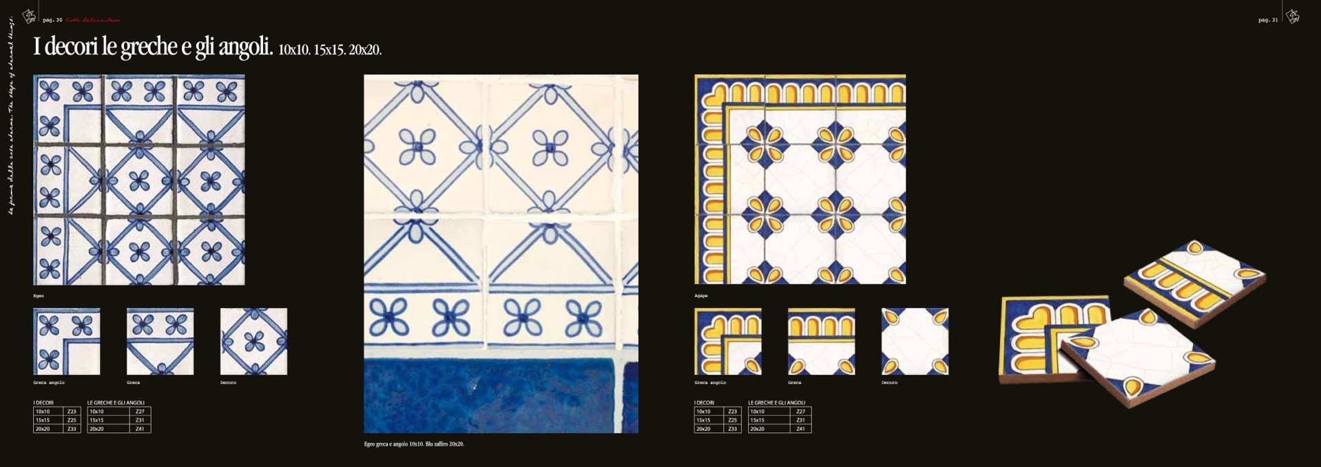 Egeo greca e angolo 10x10. Blu zaffiro 20x20.