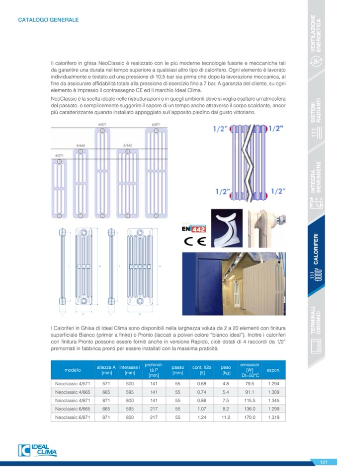 Il calorifero in ghisa NeoClassic è realizzato con le più moderne tecnologie fusorie e meccaniche tali