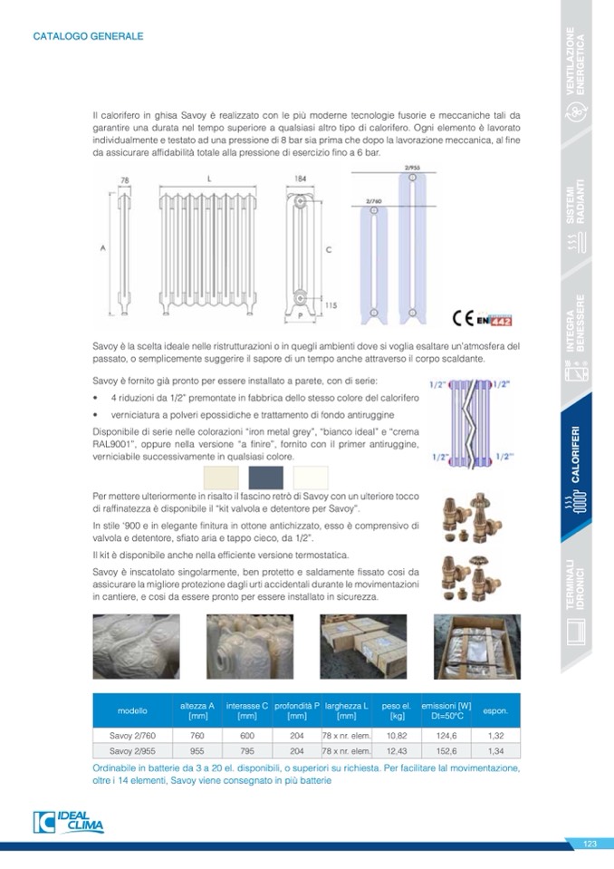 Il calorifero in ghisa Savoy è realizzato con le più moderne tecnologie fusorie e meccaniche tali da