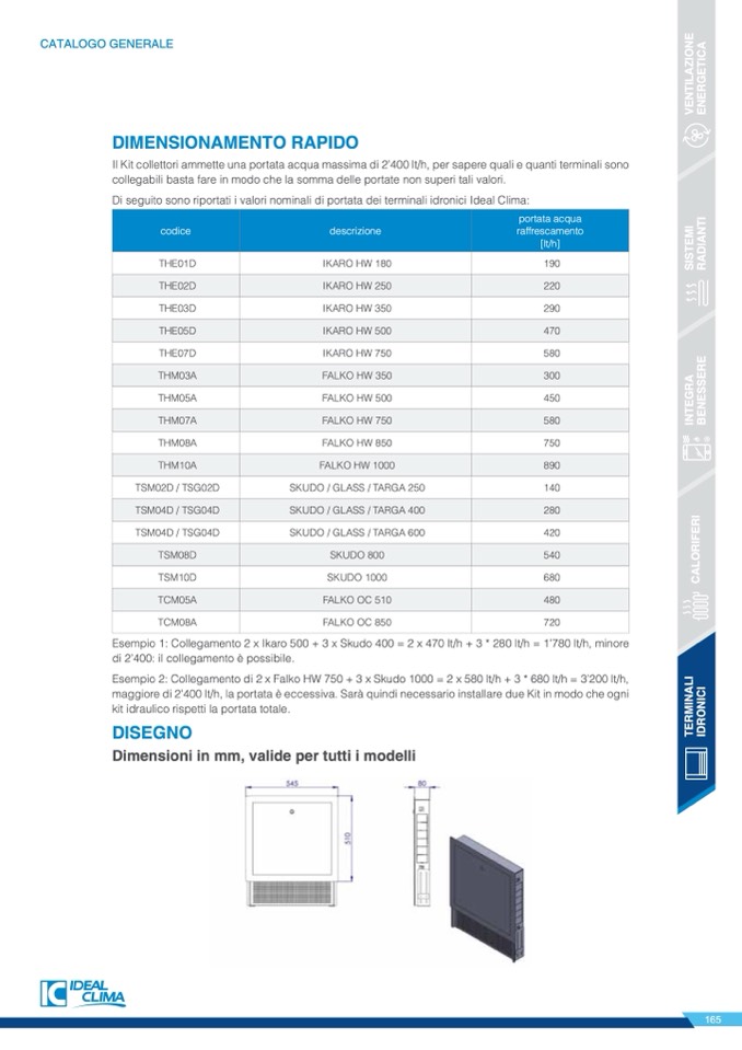 Di seguito sono riportati i valori nominali di portata dei terminali idronici Ideal Clima: