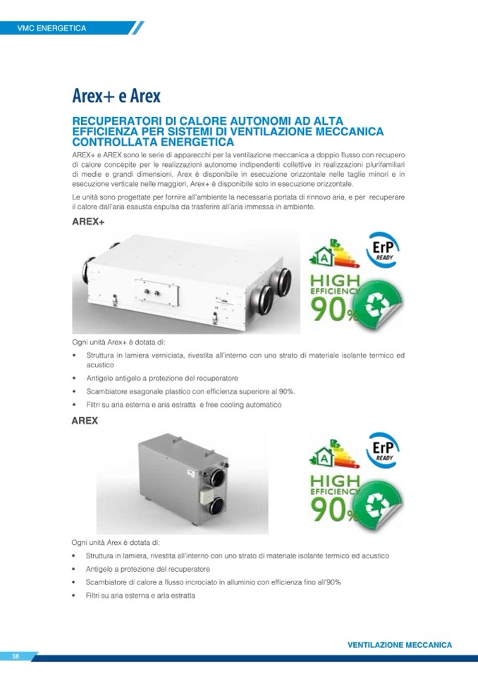 AREX+ e AREX sono le serie di apparecchi per la ventilazione meccanica a doppio flusso con recupero