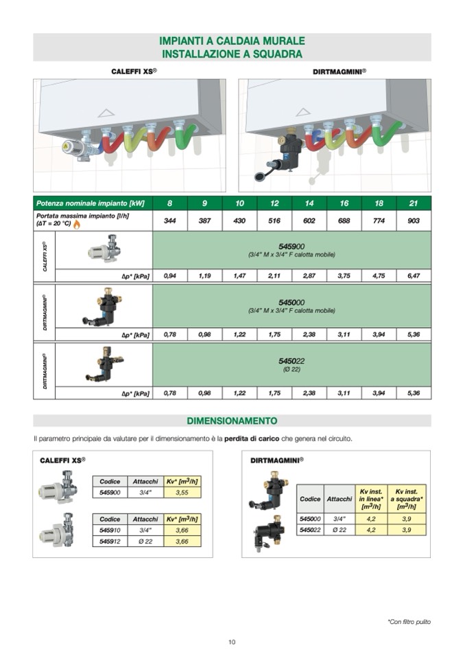 Il parametro principale da valutare per il dimensionamento è la perdita di carico che genera nel circuito