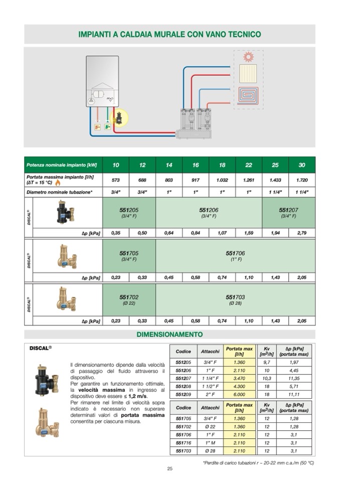 *Perdite di carico tubazioni r ~ 20-22 mm c.a./m (50 °C