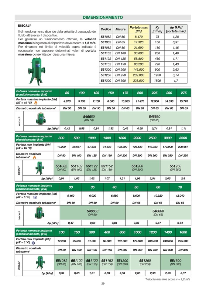 Il dimensionamento dipende dalla velocità di passaggio de
