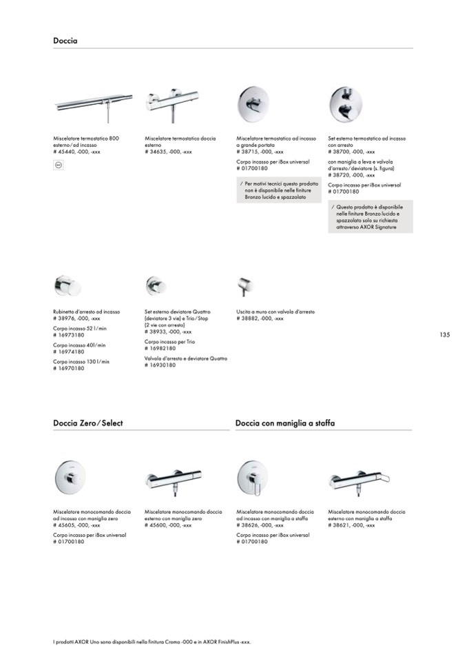 I prodotti AXOR Uno sono disponibili nella finitura Cromo -000 e in AXOR FinishPlus -xxx.
