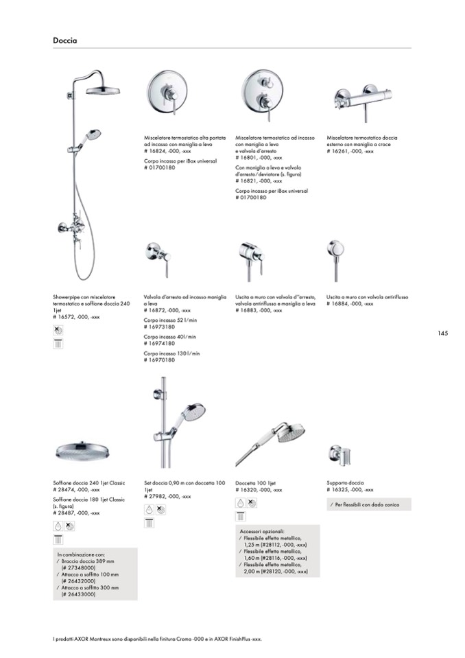 I prodotti AXOR Montreux sono disponibili nella finitura Cromo -000 e in AXOR FinishPlus -xxx.