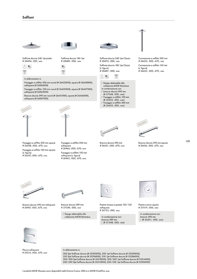 I prodotti AXOR Showers sono disponibili nella finitura Cromo -000 e in AXOR FinishPlus -xxx.