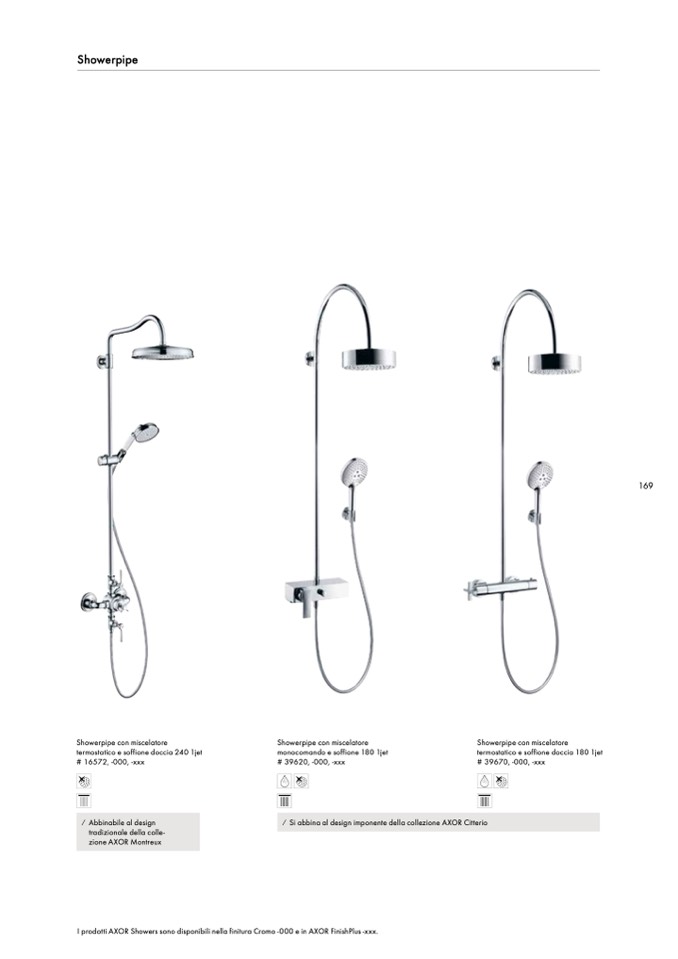 I prodotti AXOR Showers sono disponibili nella finitura Cromo -000 e in AXOR FinishPlus -xxx.