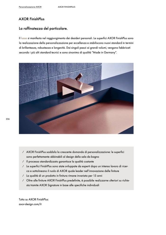 ca e sottolineano il ruolo di AXOR quale leader nell’innovazione delle finiture