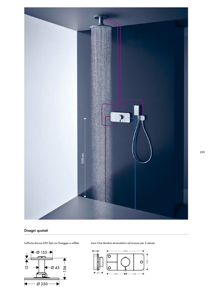 Soffione doccia 250 2jet con fissaggio a soffitto