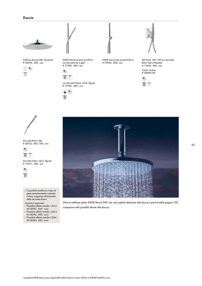 Oltre al soffione piatto AXOR Starck 240 1jet, nel capitolo dedicato alle docce a partire dalla pagina 150