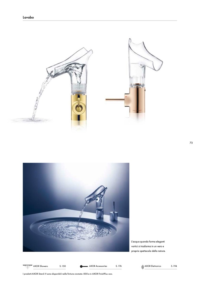I prodotti AXOR Starck V sono disponibili nella finitura cromata -000 e in AXOR FinishPlus -xxx.